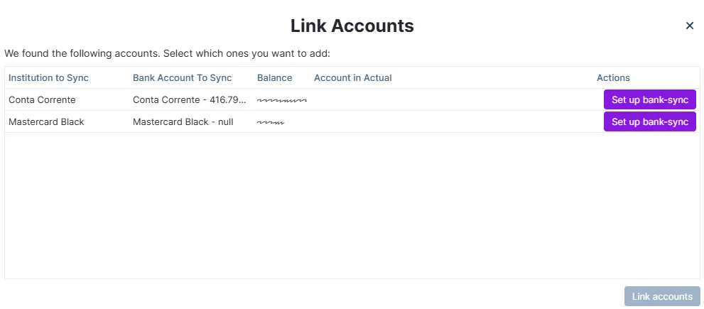 Click Set up bank-sync next to the one you want to sync.